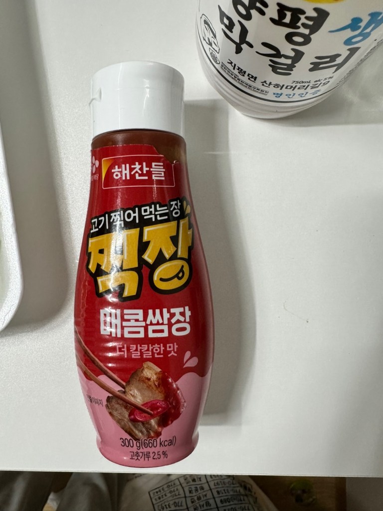Usually just soju goes well with it, because it isn’t very high in calories like beer. But this weekend an acquaintance of mine showed me a picture of a Korean restaurant in America that he had gone to and was drinking maekgolli, so I wanted to drink maekgolli.