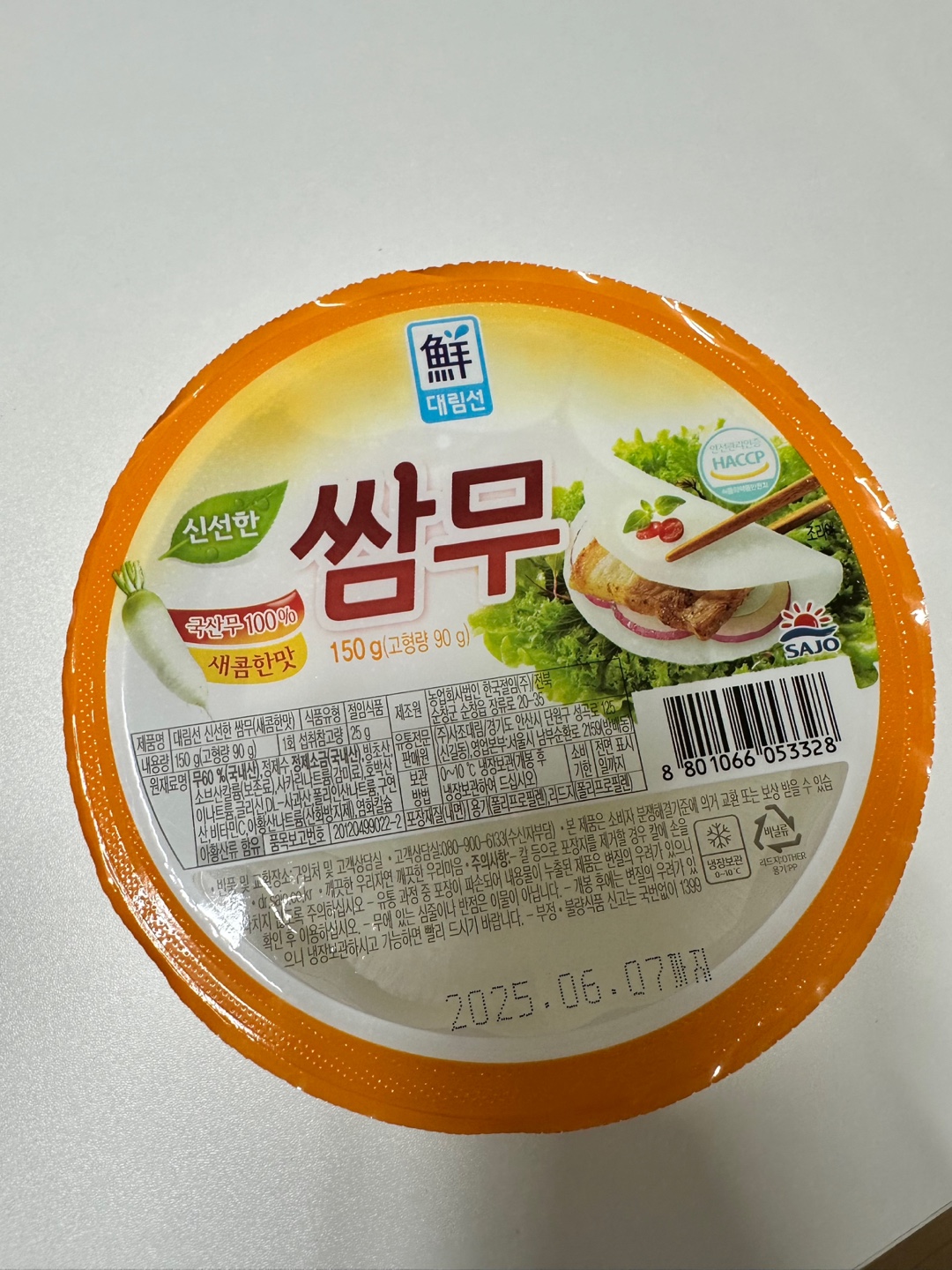 The next thing you need is vegetables for ssam. I got three kinds and usually you don’t really go more than that. These are pickled daikon (쌈무), perilla leaves (깻잎), and red leaf lettuce (적상추).